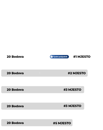 - 1. mjesto: 60% nagradnog fonda (u odgovarajućoj protuvrijednosti)