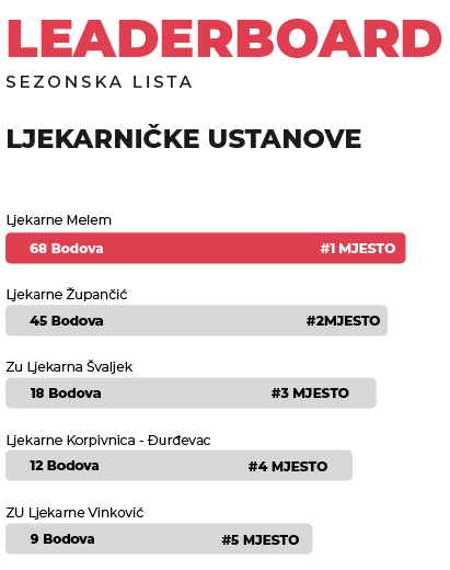 Osim osobnog uspjeha, svojim sudjelovanjem i rezultatima pomažeš svojoj ljekarni ili ustanovi plasirati se visoko na rang listi, čime osiguravaju dodatnu vidljivost i prestiž ustanove u industriji. Osiguraj bolje uvjete!