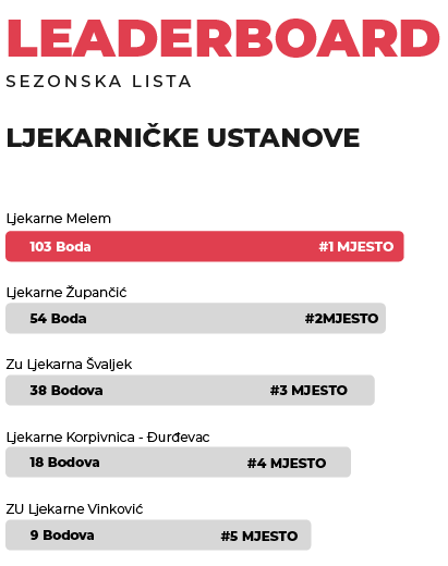 Osim osobnog uspjeha, svojim sudjelovanjem i rezultatima pomažeš svojoj ljekarni ili ustanovi plasirati se visoko na rang listi, čime osiguravaju dodatnu vidljivost i prestiž ustanove u industriji. Osiguraj bolje uvjete!